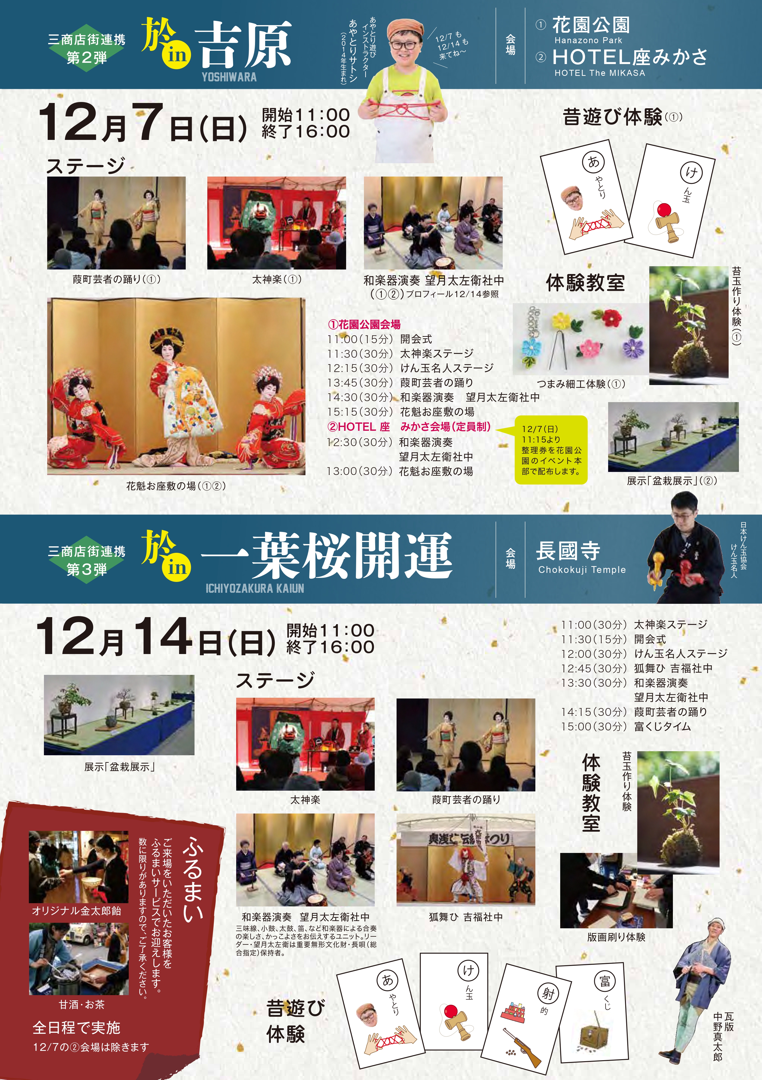 台東区と中央区の商店街が連携し、江戸あそびイベントを開催いたします。ステージ(花魁お座敷の場、狐舞ひなど)、体験教室(つまみ細工、苔玉作り)、昔遊び体験(けん玉、射的など)など盛りだくさんのイベントです。