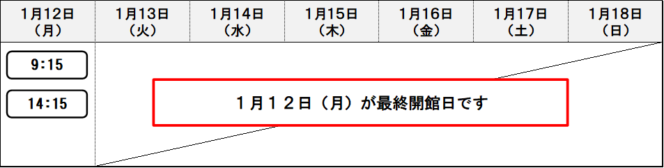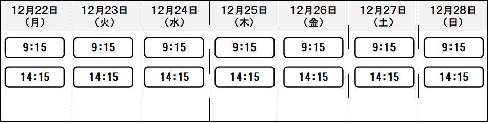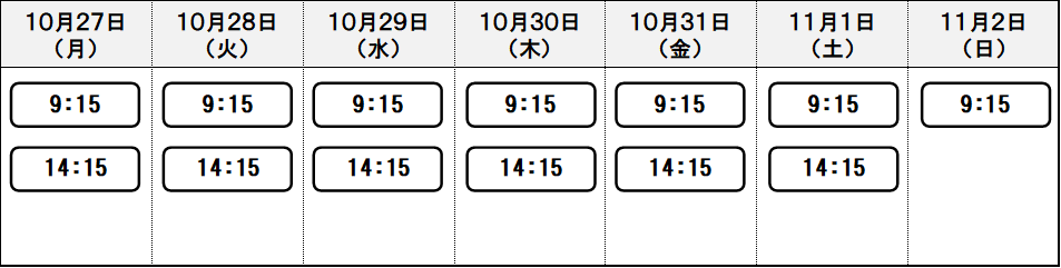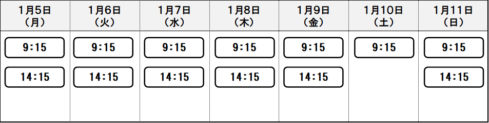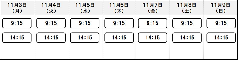 運営の都合上、実施時間は時期により異なりますので、予めご了承ください。