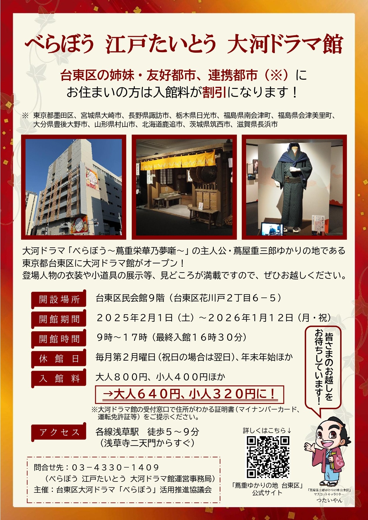 【大河ドラマ館】台東区の姉妹・友好都市、連携都市にお住まいの方は入館料が割引になります!