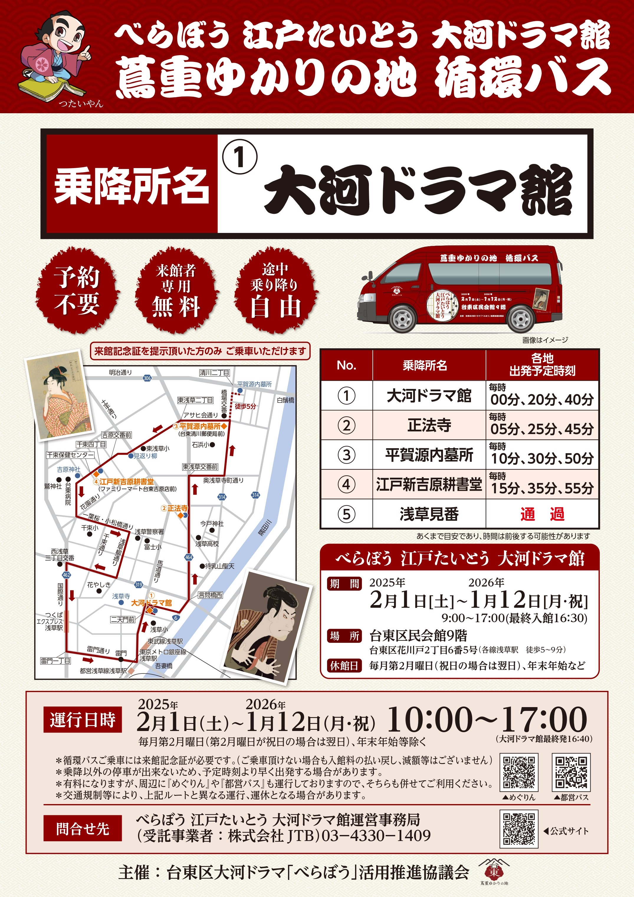 蔦重ゆかりの地 循環バスの乗降場である浅草見番は10月4日(土)から都合により、通過となります。