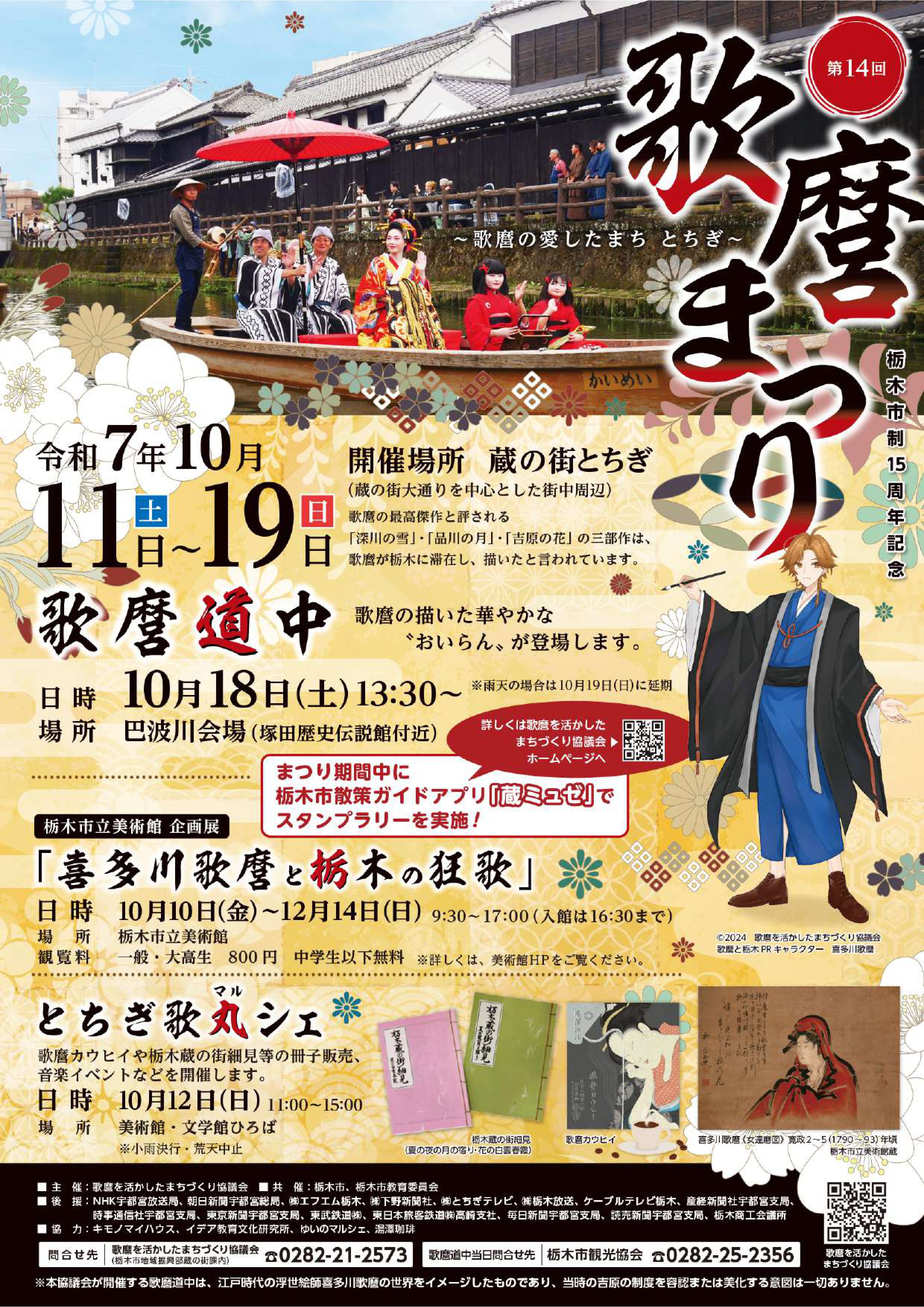 喜多川歌麿ゆかりの栃木県栃木市では、10月11日(土)から19日(日)まで、「第14回歌麿まつり」が開催されます。