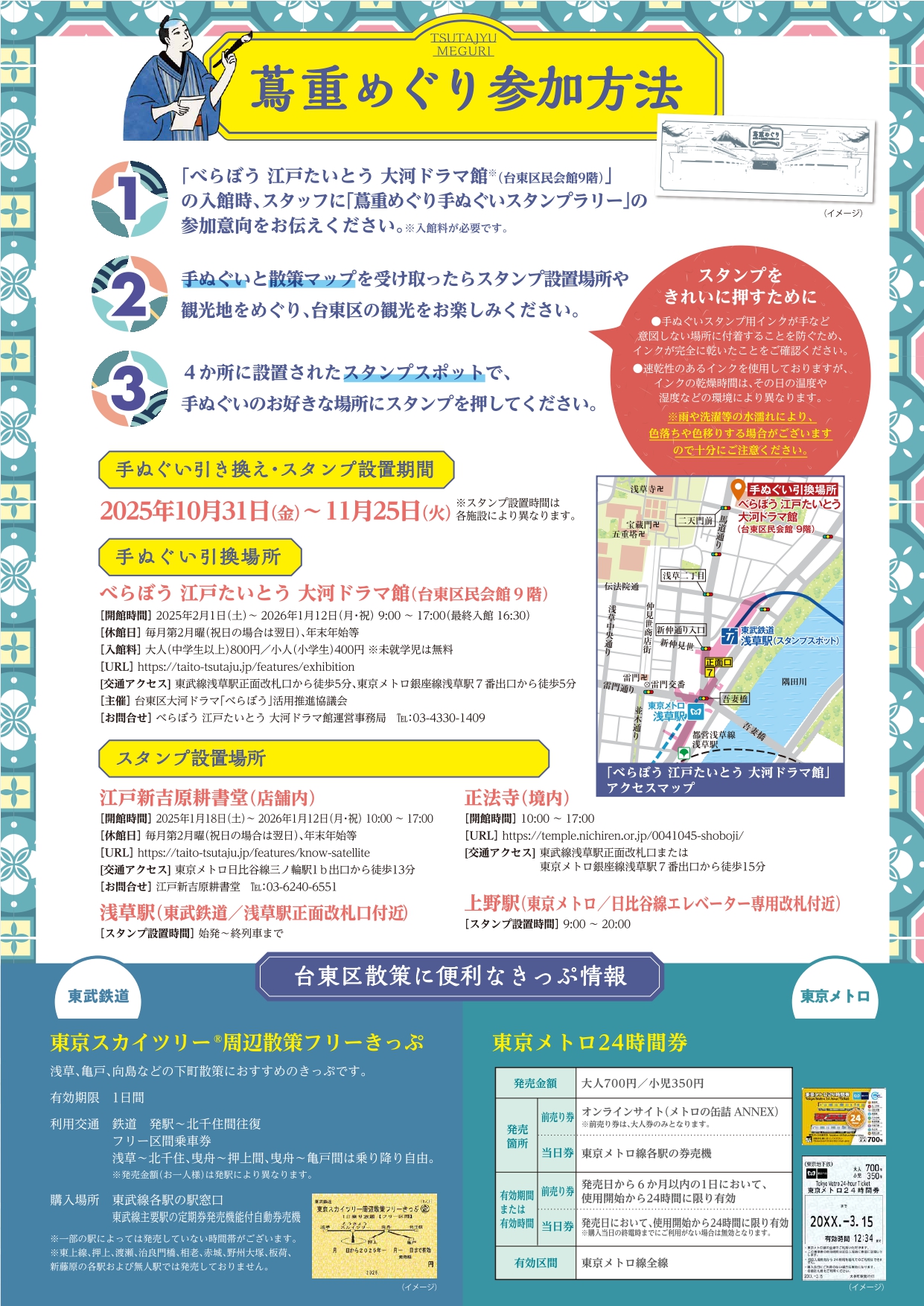 大河ドラマ「べらぼう~蔦重栄華乃夢噺~」の主人公・蔦屋重三郎ゆかりの地の台東区で、『蔦重めぐり ~台東区×東武鉄道×東京メトロ~ 手ぬぐいスタンプラリー』が開催されます。ぜひご参加ください。詳しくはこちらをご覧ください。.jpg)