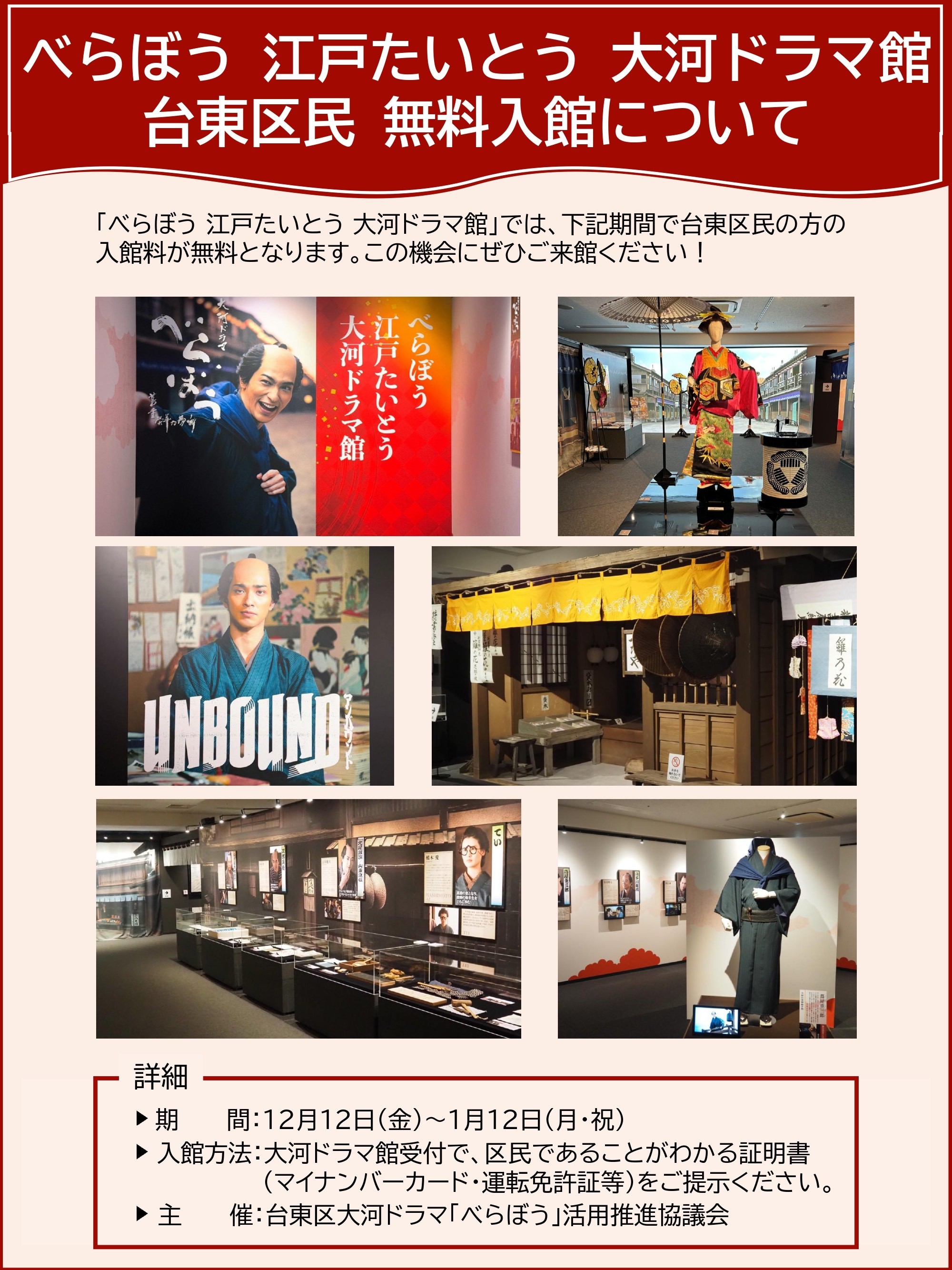 【大河ドラマ館】12月12日(金)から台東区民の方は無料で入館いただけます!