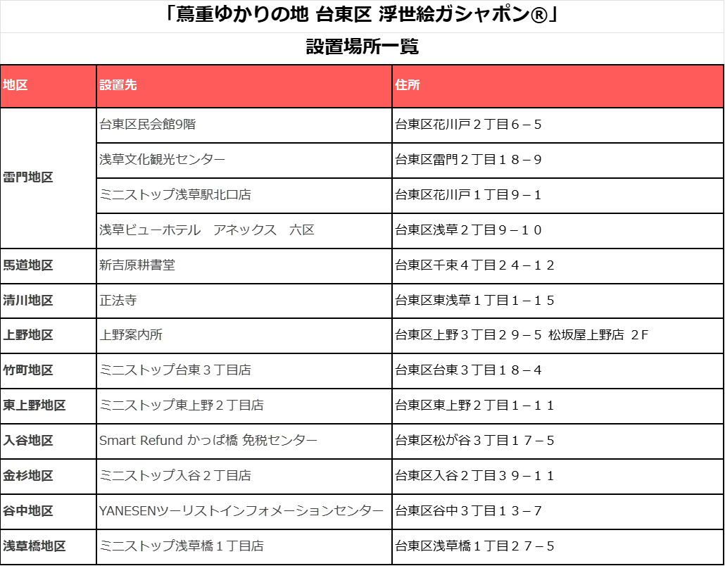 蔦重ゆかりの地 台東区 浮世絵ガシャポン®を発売しています!